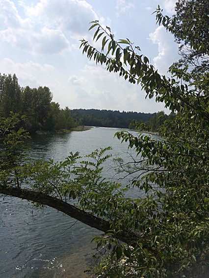 Tenete la destra, proseguendo nel bosco sul sentiero principale. Al primo bivio, girate a sinistra e andate dritti fino a incontrare il fiume. Costeggiando il fiume controcorrente, si arriva finalmente a una zona sabbiosa. La spiaggia vi ripaghera' della camminata, una ventina di minuti, che comunque e' sempre in piano.